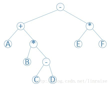如上图的前缀表达式为- + A * B - C D * E F。