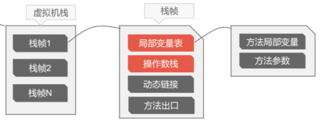 接下来详细讲解一下栈帧中的局部变量表、操作数栈、动态连接、方法返回地址等各个 部分的作用和数据结构。