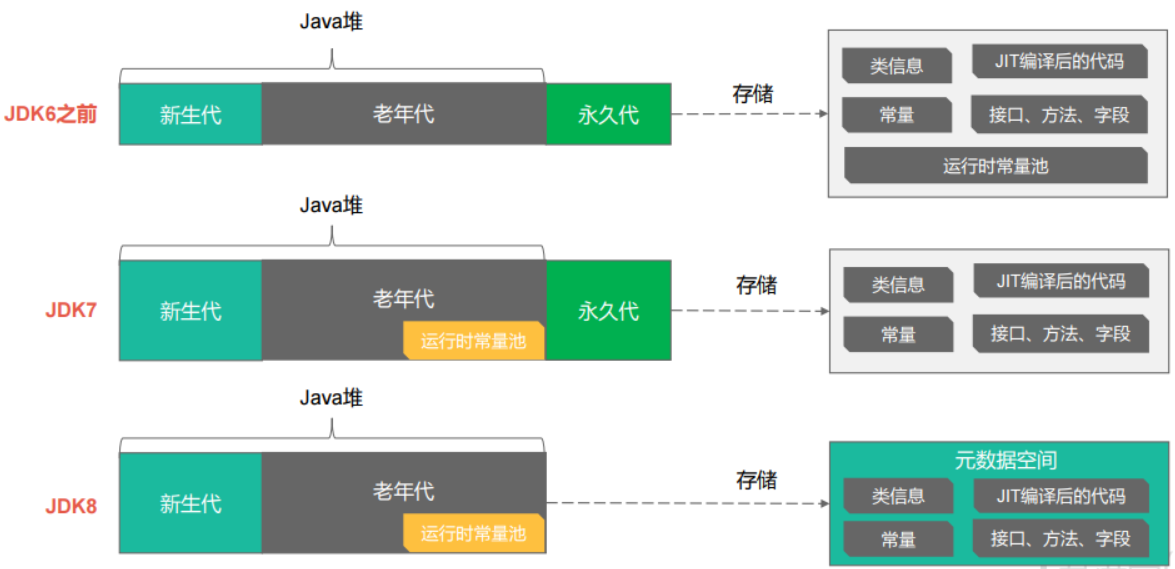 我们来看看HotSpot虚拟机方法区的变化: