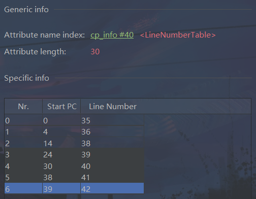 line_number_table是一个数量为line_number_table_length、类型为line_number_info的集合,line_number_info结构如下: