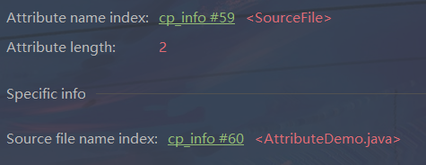 sourcefile_index是指向常量池中一CONSTANT_Utf8_info类型常量的索引,常量的值为源码文件的文件名。实例如下: