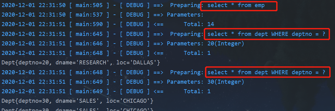 效果很明显,只执行了一条sql,查询了所有员工信息,并没有查询部门信息。