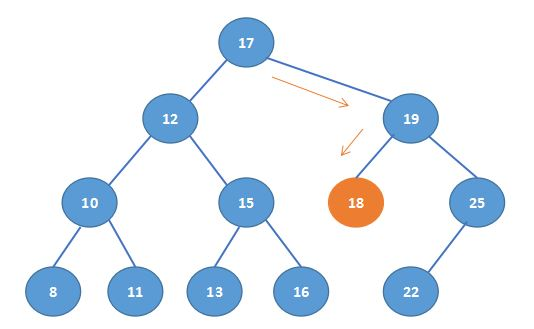 插入新元素时,可以从根节点开始,遇键值较大者就向左,遇键值较小者就向右,一直到末端,就是插入点。