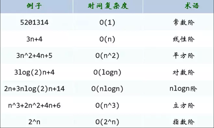 这种与问题的大小(n的多少)无关,执行时间恒定的算法,我们称之为具有为O(1)的时间复杂度,又叫常数阶。