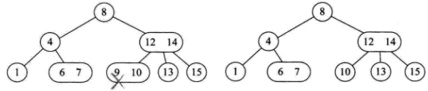 - 若它的键小于节点中所有键,则进入左子节点继续查找;