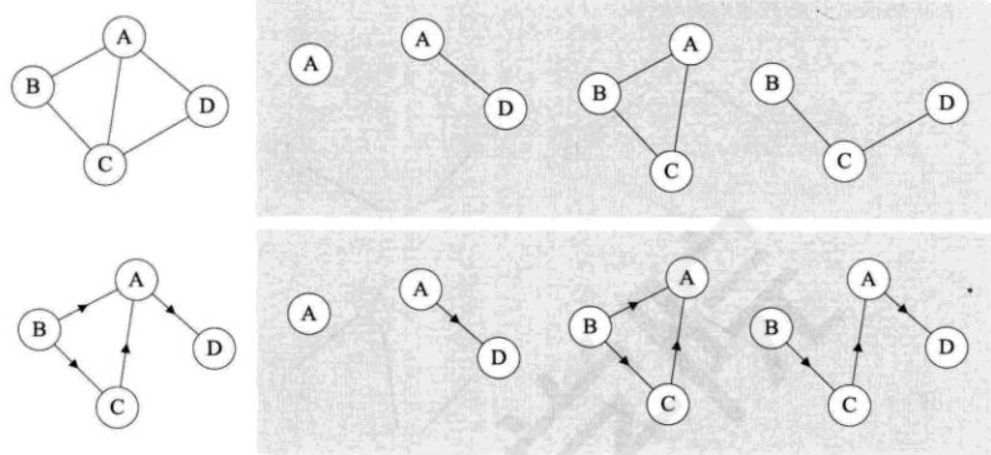 如下图,带底纹的图均为左侧无向图与有向图的子图。