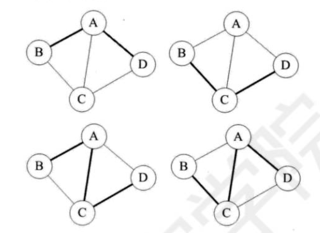 生成树:一个连通图的生成树是一个极小的连通子图,它含有图中全部的n个顶点,但只有足以构成一棵树的n-1条边。